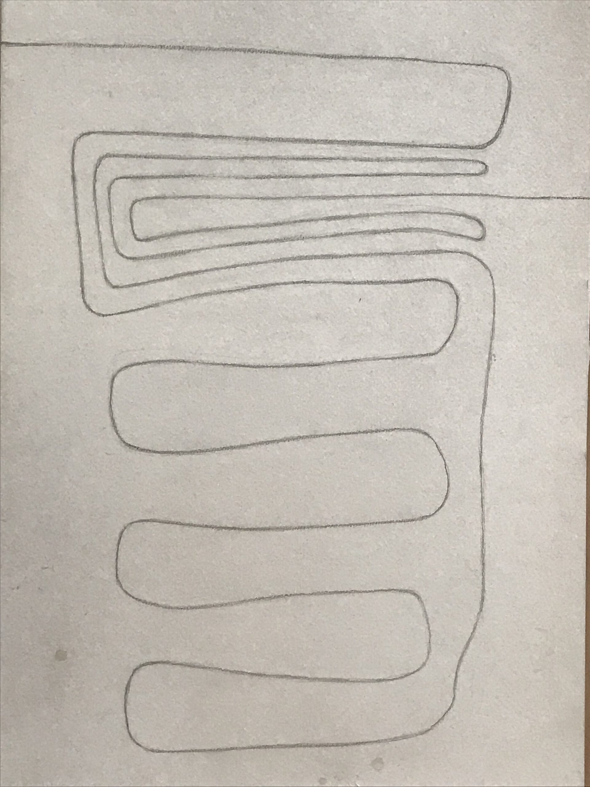 Als je in ademt op de beweging van de lijn en vervolgens uitademt ervaar je als de ademhaling in jou is stilgevallen je eigen heelheid.